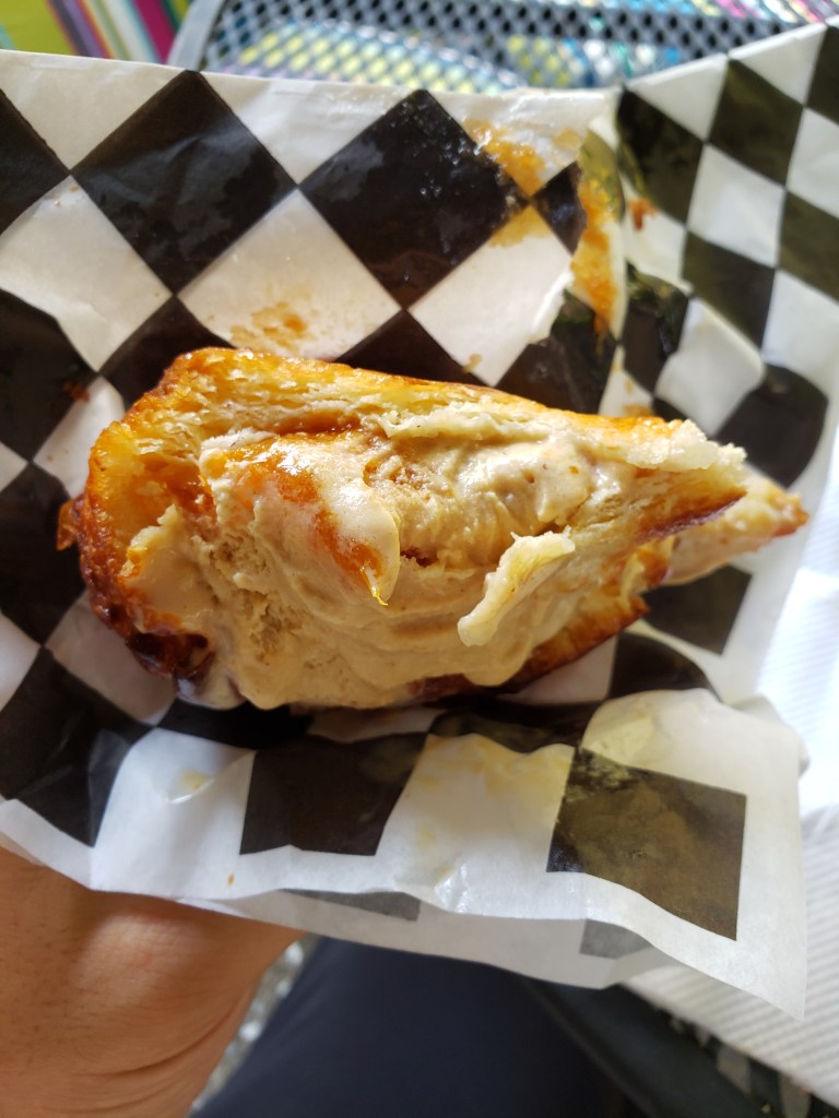 Posie’s treat feels like something new has been added to the standards set by the previously mentioned ice cream sandwiches, and I think that has to do with the inclusion of the kouign amann. A gourmet ice cream sandwich is nothing new, but Posie’s ice cream is on another level of tasty and the sliced kouign amann from the nearby bakery M.H. Bread and Butter makes this treat special. They are not the only bakery to offer this French pastry, and maybe because their version was my introduction, the kouign amann from M.H. is the best I’ve had.